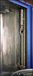The Short High Impact Manifold (SHIM) is a second Manifold System within the Cabinet: The standard PBM Manifold covers the entire wash envelope, and a short ultra-powerful SHIM concentrates all the blasted energy into a lower profile for short wash loads. Both Manifolds are coupled together and oscillated by a common Drive. A Selector Valve diverts solution flow from one Manifold to the other. When the SHIM is deployed, because the nozzles are packed more closely together, 15 degree nozzles are utilized to increase the impact pressure by 67%. The SHIM is capable of removing carbon, paint and scale in short wash cycles. The SHIM Manifold system offers the advantage of having two different Washing Machines in one cabinet.